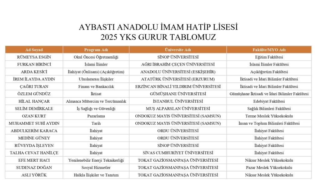 Aybastı Anadolu İmam Hatip Lisesi Tanıtım El Broşürü
